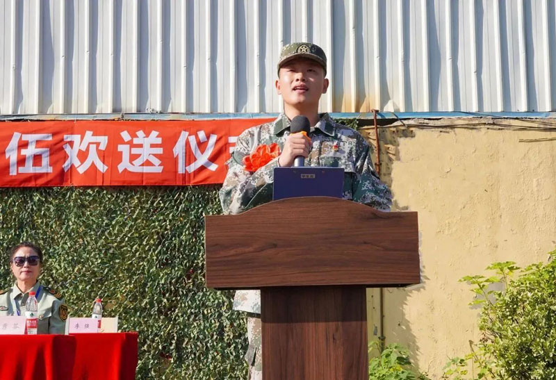 曲永强校长发言中表示希望你们立志军营,进一步提高政治素养;希望你们严守纪律、忠于职守,苦练军事技能,尽快完成从学生到合格军人的转变;希望你们安心部队生活,服从命令、听从指挥,在爱国奉献中实现自身价值。母校会时刻关注你们的成长进步,母校永远是你们的家,永远是你们的坚强后盾。