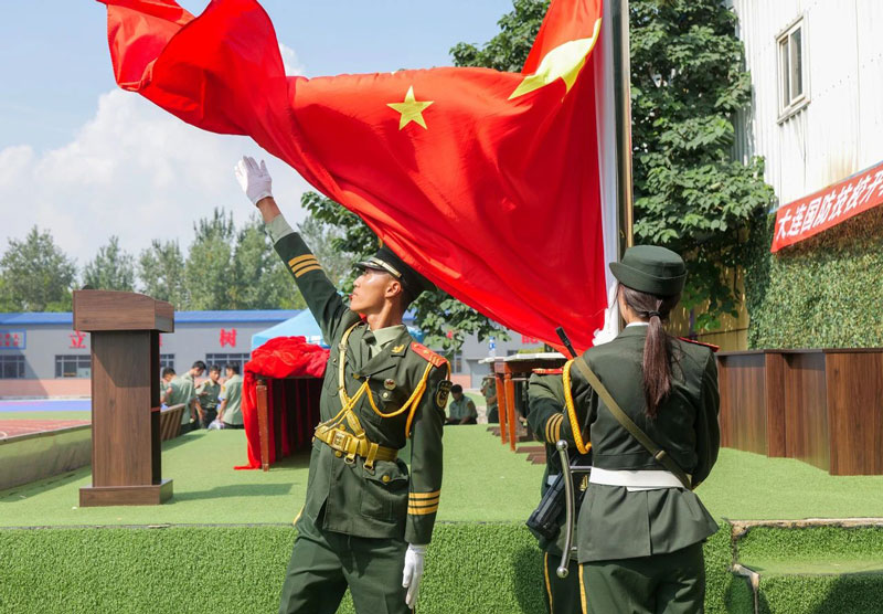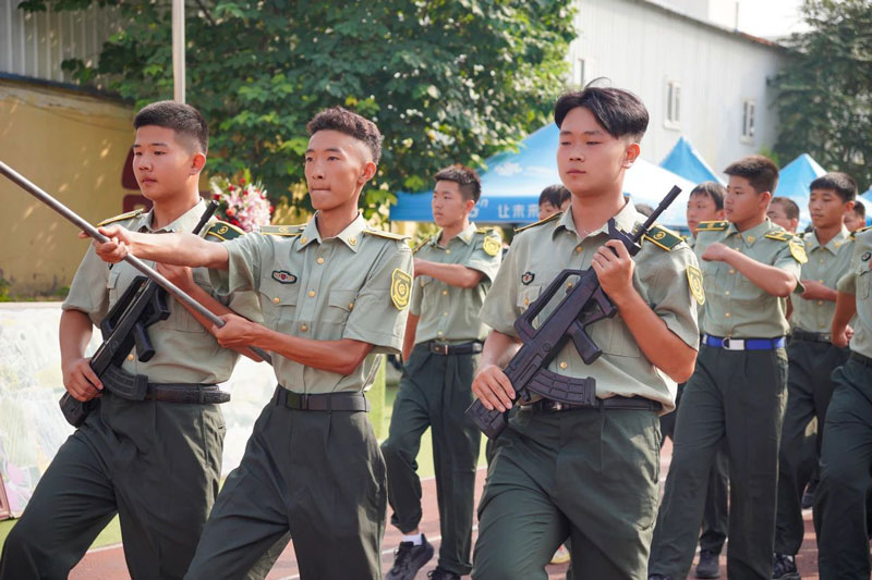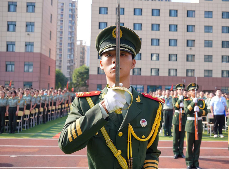 在教官的口令下,国防学子新生们以积极昂扬的姿态、整齐划一的口号向领导展示自己的军训成果,充分展现了国防学子新时代青少年的精神面貌!