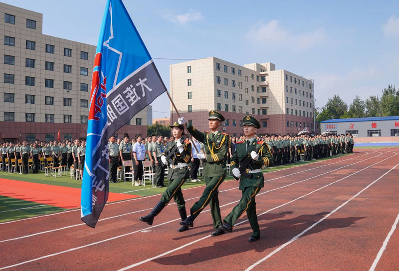 曲永强校长在发言中表示希望新学子们在国防乘风破浪,扬帆启航。愿国防走进学生的人生,成就梦的芳华;也愿学生们走进国防的岁月,续写属于自己的精彩与美好。同学们,国防人最自豪的事情就是为党和国家的职业教育事业发展贡献力量。希望你们赓续国防精神传统,树立贡献强国伟业的奋斗目标,始终向着这一目标不断奋进,努力成长为可堪大用的强国先锋!你们生逢其时,也重任在肩。成大才、担大任,注定是不平凡的征程。“路虽远,行则将至”!今天,你们站在人生新起点,相信你们在国防这片沃土上,明方向、练本领、强身心,一定会成长为能担重任的强国先锋。