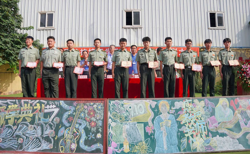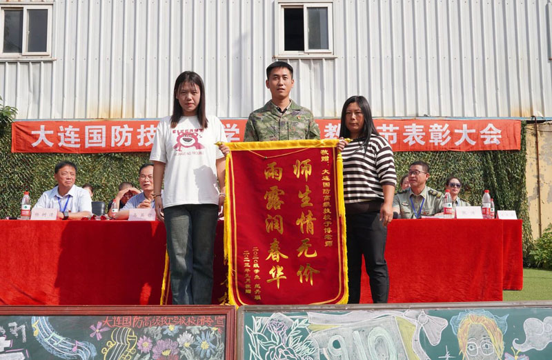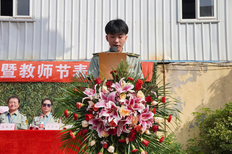 21计算机2班的闫恒达同学作为优秀学生代表全体学生向务实求新,无私奉献的各位领导表示祟高的敬意;向学识渊博,认真负责的老师们表示诚挚的谢意,同时向加入我们大连国防高级技工学校的新同学表示热烈的欢迎。并代表全体学生祝所有老师们,教师节快乐!